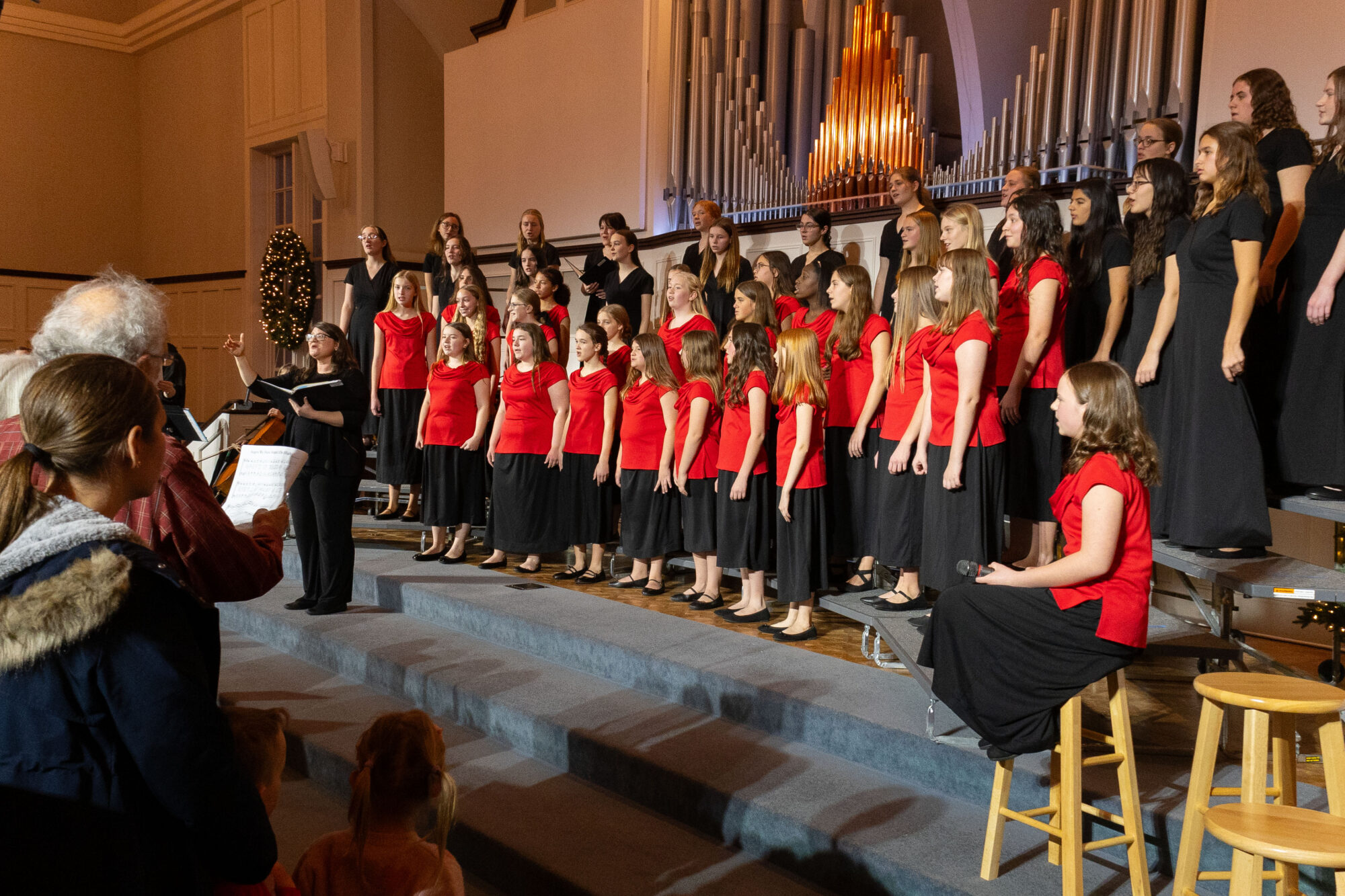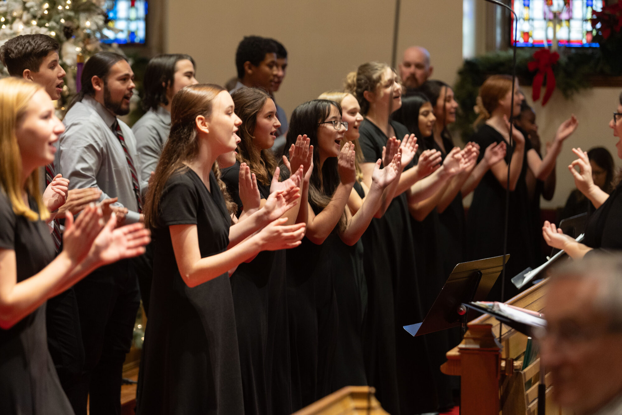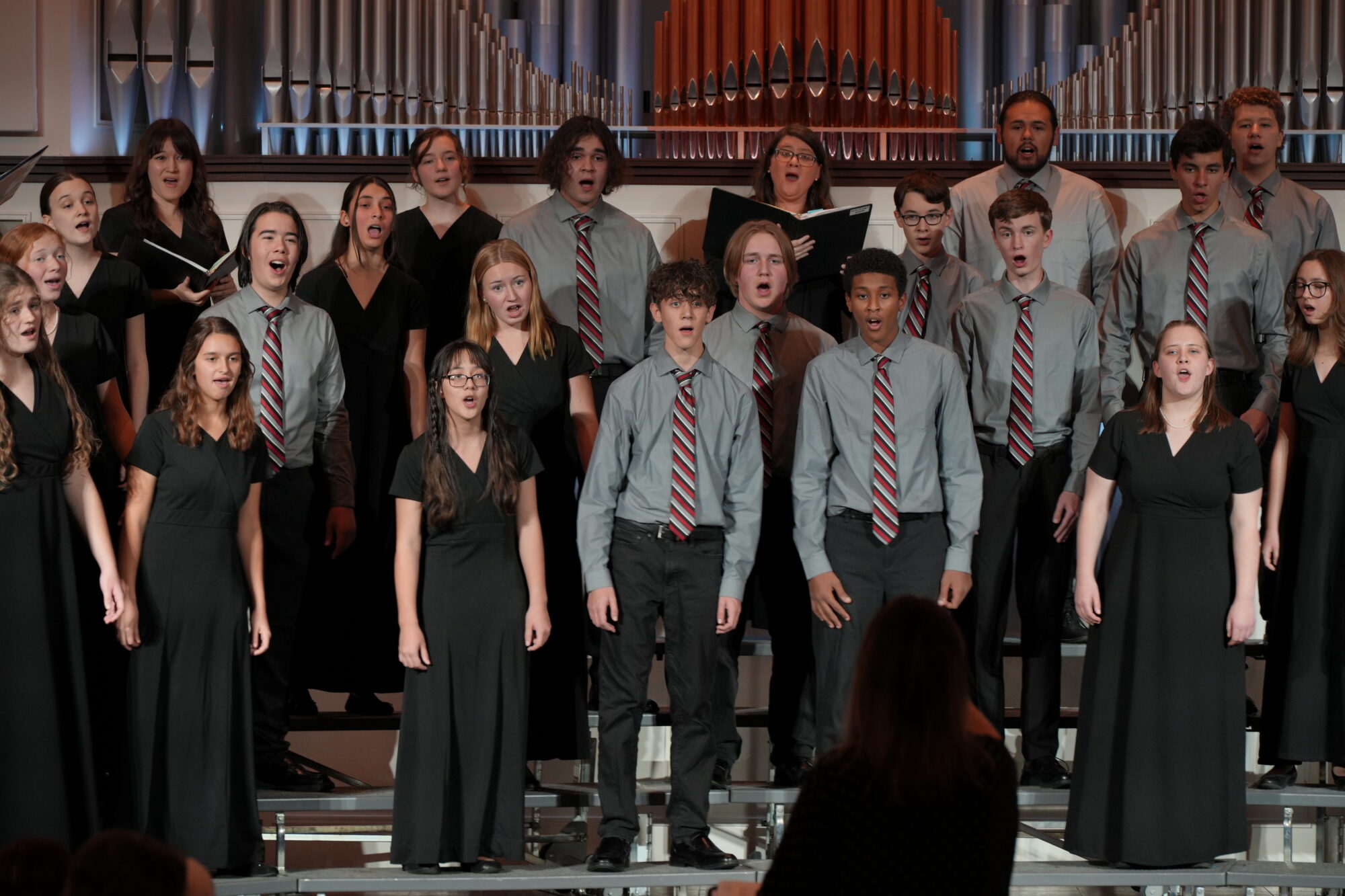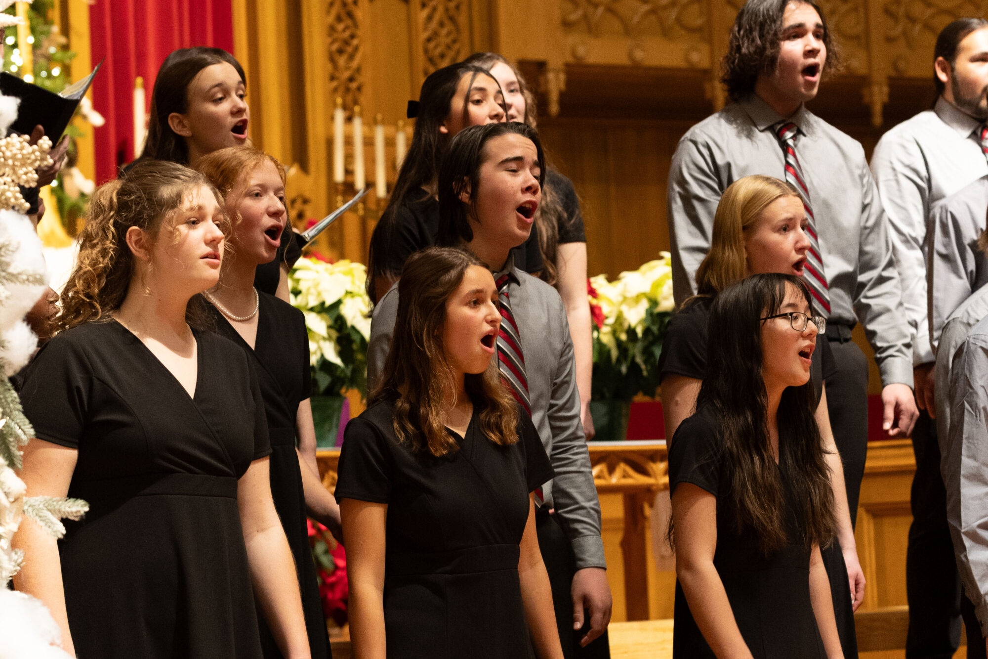 Yesterday was truly more than a performance – it was an incredibly uplifting experience! The selections all fit beautifully into the theme of “Gather at the Manger.” There was so much variety in styles. The student speakers were so polished and sincere. The quality of tone and blend in all choirs, the VOWELS and overall diction – just WONDERFUL!” – concert attendee