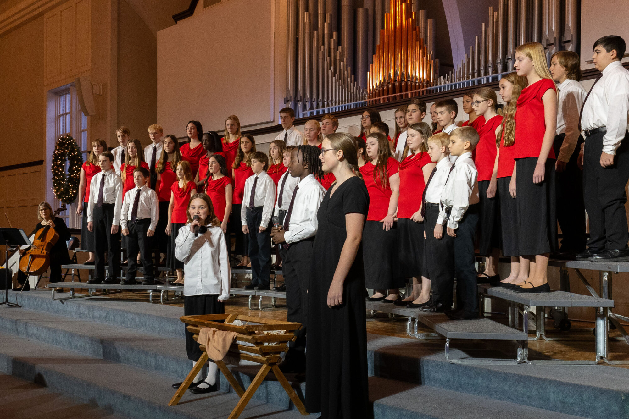 Throughout the concert, middle school narrators guided the audience through the unfolding story of Christ’s birth. Local professional guest instrumentalists joined the singers on cello, flute, oboe, guitar, trumpet, and percussion, adding depth and beauty to the musical storytelling. The experience offered a meaningful and inspiring beginning to the Advent season, drawing the community together in celebration, worship, and reflection.