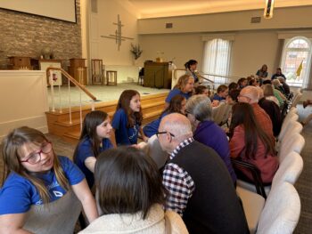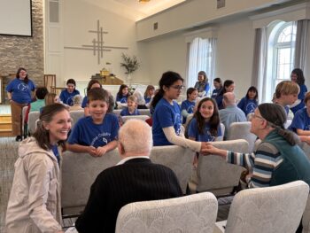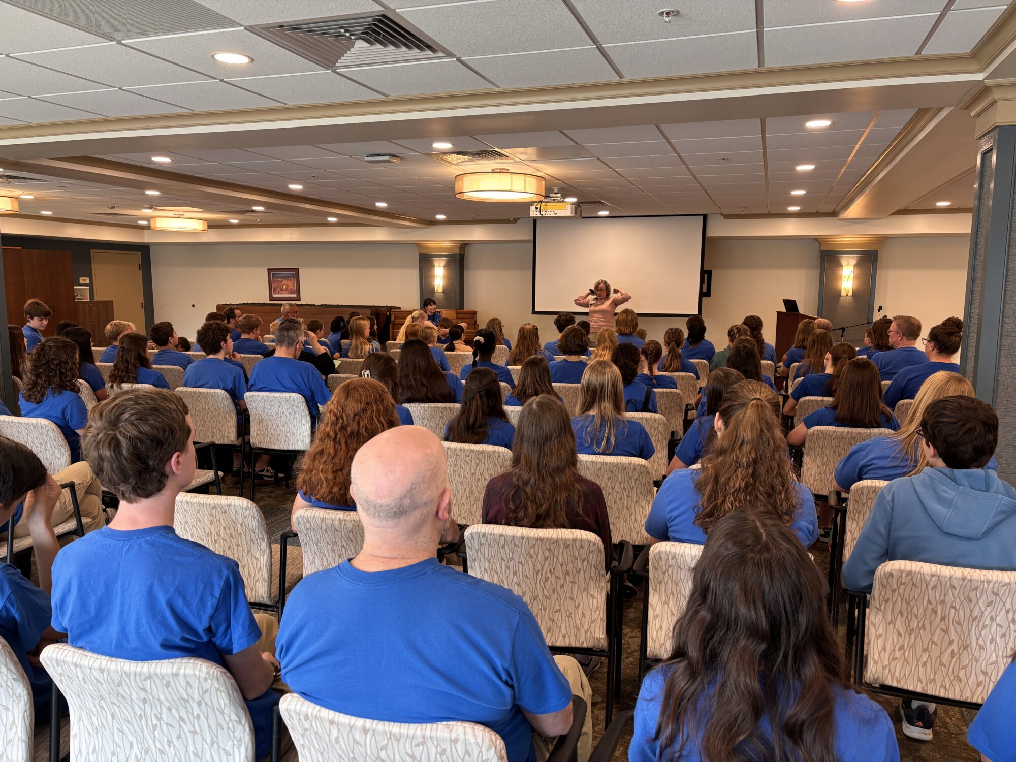 Carol (elementary), Concert (middle), and Chamber (high school) Choir singers began each local tour day with training from Landis Homes staff, Audrey Kanagy and Teffie Landmann, exploring topics such as brain changes, the impact of stress on the brain, and meaningful ways to support aging adults. This foundation prepared students to engage with residents in ways that were respectful, informed, and relationship‑centered.